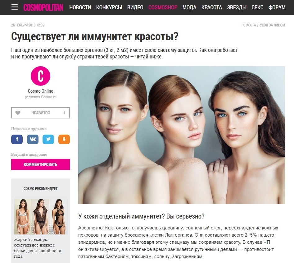 Иммунитет кожи - то, от чего зависит ваша красота.